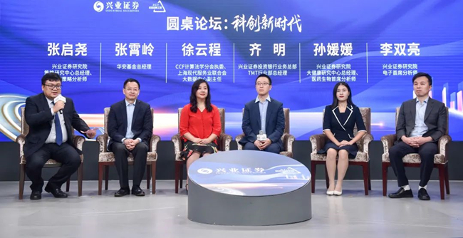 今年正值科创板成立三周年,在全球大变局之下、科创渐成大国竞争战略的核心共识。为此,本次策略会的圆桌论坛特别邀请了华安基金总经理张霄岭先生、ccf计算法学分会执委、上海现代服务业联合会大数据中心副主任徐云程女士,兴业证券投资银行业务总部tmt行业部总经理齐明先生,兴业证券医药生物首席分析师孙媛媛女士和电子首席分析师李双亮先生,在兴业证券首席策略分析师张启尧先生的主持下,共同就科创产业未来的发展趋势以及投资方向进行了深入探讨。