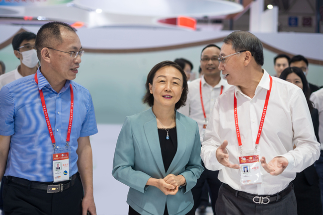 6月18日,第二十届中国·海峡创新项目成果交易会在福州海峡国际会展中心开幕,兴业证券集团亮相金融服务馆。福建省委常委、常务副省长郭宁宁在省政府副秘书长尤思德、福建省金融监管局局长薛鹤峰、副局长谢建潮、福建证监局副局长翁国斌等陪同下莅临兴业证券集团展馆视察参观指导,兴业证券董事长杨华辉、副总裁孔祥杰等陪同参观。