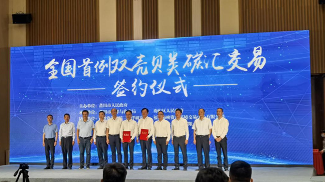 5月19日,全国首例双壳贝类海洋渔业碳汇交易在莆田落地,交易双方林蚝(福建)水产有限公司和福建华峰新材料有限公司在莆田市政府、自然资源部第三海洋研究所、海峡股交子公司-海峡资源环境交易中心等单位的共同见证下进行现场签约。