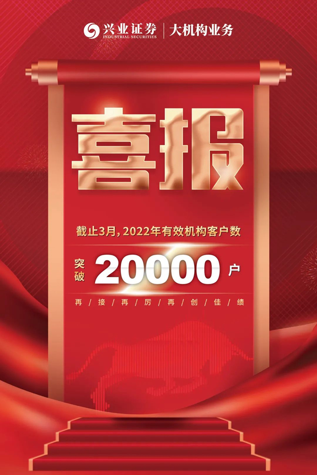 新冠疫情发生以来,兴业证券上下一心坚守“疫情就是命令,防控就是责任”,落实疫情防控的各项要求。面对严峻的疫情形势,集团齐心协力保持战略定力,坚持稳中求进,凝心聚力,共克时艰,“兴客兴增”户增户涨!截止3月末,兴业证券有效机构客户突破20000户!