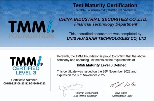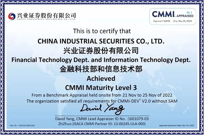 近日,兴业证券顺利通过软件研发成熟度能力cmmi(dev v2.0)3级、测试成熟度能力tmmi3级两项国际认证,成为证券行业率先同时具备两项认证资格的证券公司之一。这标志着兴业证券的证券软件研发管理能力和测试水平获得国际权威机构认可,构建标准化、规范化、敏捷化的企业级软件研发体系工作取得里程碑式进展,为切实推进集团数字化转型奠定了良好的科技基础。