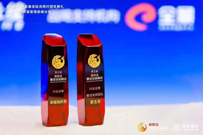 3月16日,第五届新财富最佳投资顾问颁奖典礼暨财富管理高峰论坛在上海成功举办,兴业证券再创佳绩,连续五年荣获“卓越组织奖”,同时荣获“2022新财富最佳投资顾问团队”第五名。