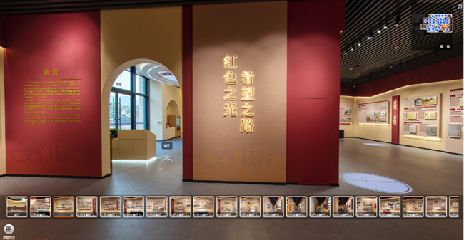 线上馆采用h5互动技术,以360度环形展厅,全景呈现展馆内的上墙文字、展出图片、展柜文物及各类多媒体视频,同时在各个展区设置语音导览按键,一键即可收听精彩讲解,如同亲临展馆现场。