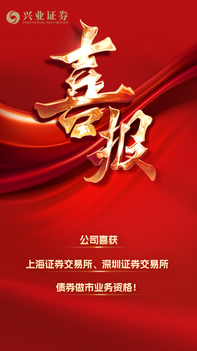 近日,兴业证券相继获批上海证券交易所、深圳证券交易所债券做市业务资格,全国仅有15家券商获批交易所债券做市资格,体现了兴业证券综合金融服务实力获得行业充分肯定。